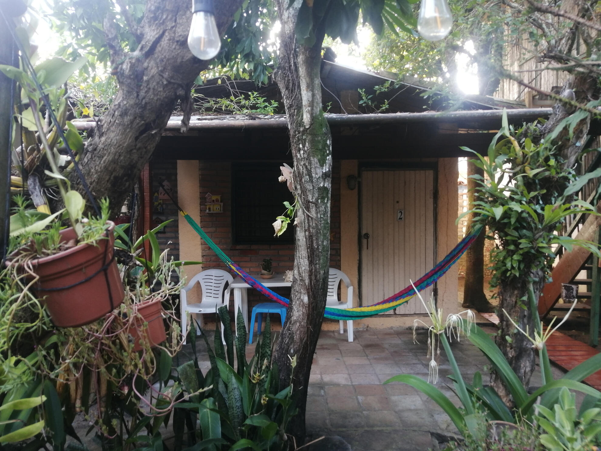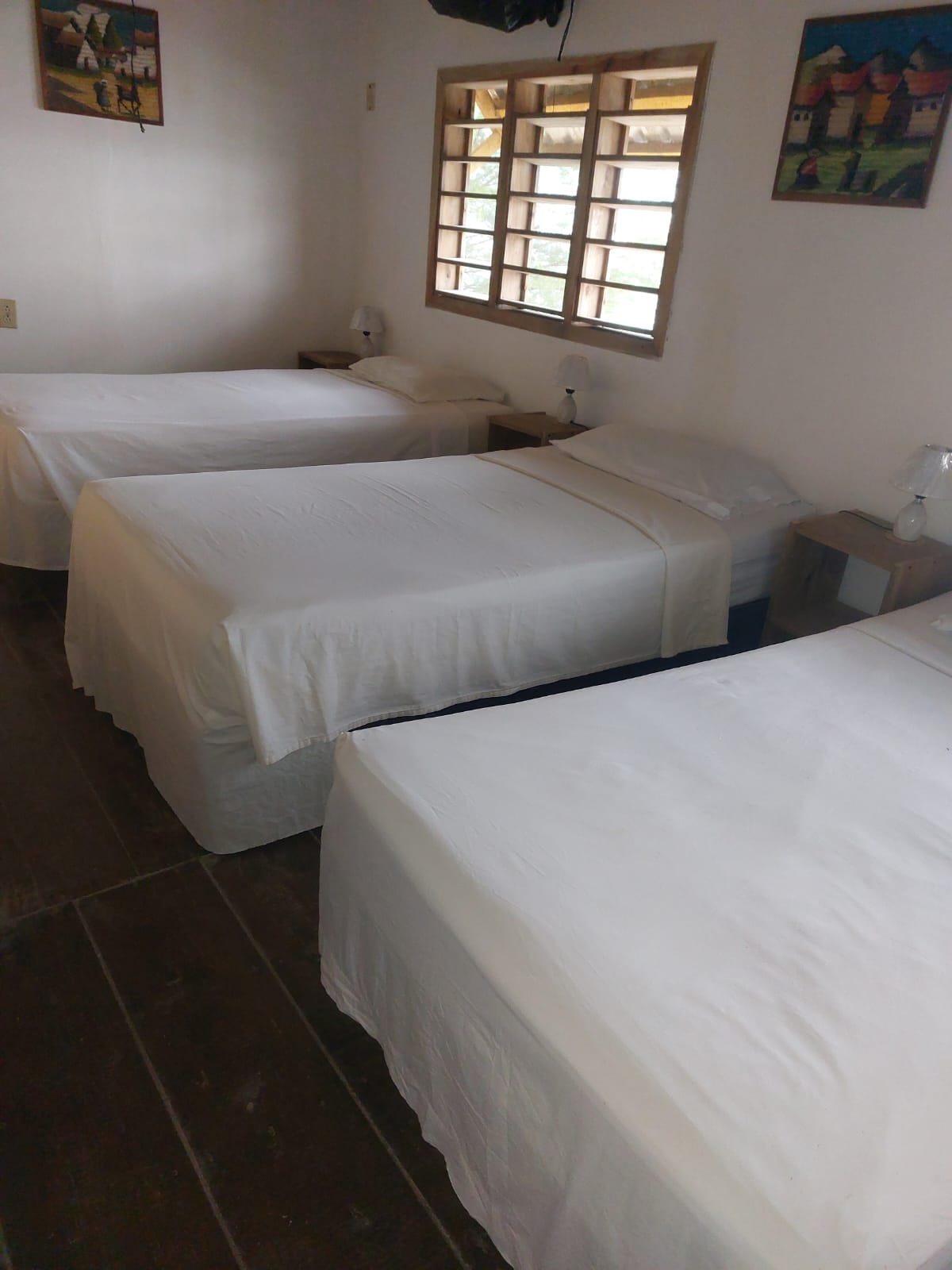 Ademas de las Cabañas, tenemos un DORMITORIO COMUNAL con tres camas individuales, precio por cama, público mixto (hombres y mujeres). La mejor vista a la playa desde el dormitorio del segundo piso. La tarifa incluye desayuno diario, impuestos y wifi. No TV. El baño es compartido con los otros huéspedes.